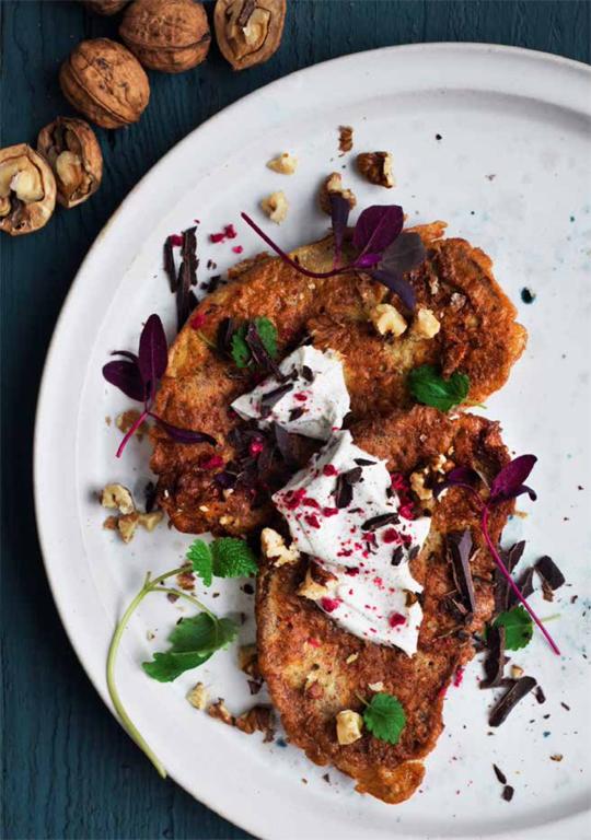 Arme riddere med cremefraiche, choko og valnødder